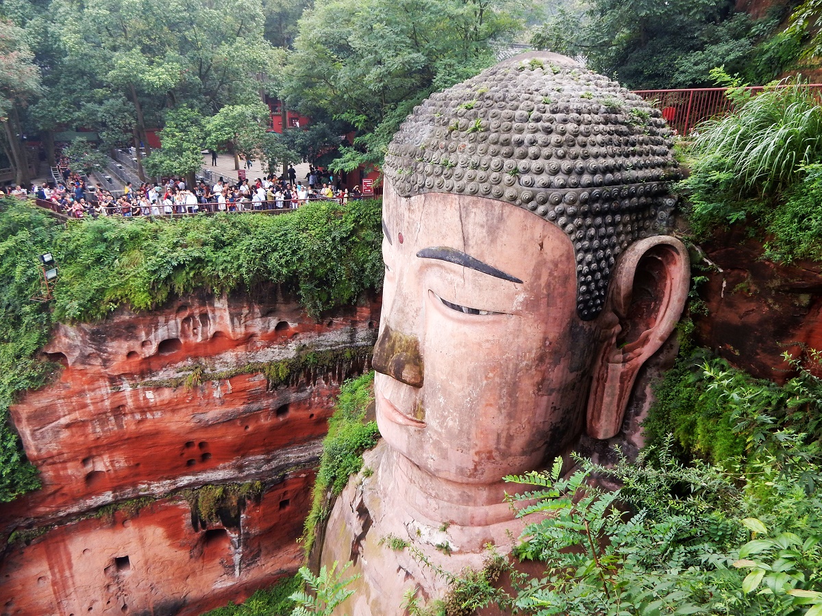 Первый буддийский храм в Китае был сооружен в районе живописной горы Эмэйшань (территория современной провинции Сычуань) еще в I в. Появление здесь других монастырей, а также приумножение, с течением веков, культурных ценностей привело к тому, что гора стала одной из главных святынь буддизма. Наиболее примечательна статуя «Большой Будда» в Лэшани, вырезанная прямо в скале в VIII в., и изображающая Будду, смотрящего вниз на место слияния трех рек. Высота статуи 71 м, и она считается самым большим в мире скульптурным изображением Будды. Район Эмэйшань ценен и своей разнообразной растительностью, которая варьирует от вечнозеленых субтропических лесов до субальпийских сосняков. Некоторые из местных деревьев имеют возраст более тысячи лет.